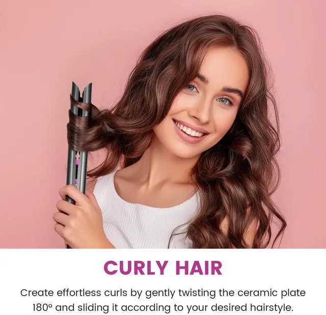 This flat iron is designed with a curved design which can make curly or straightened hair, and the ultra-long ceramic plates make hair smooth.