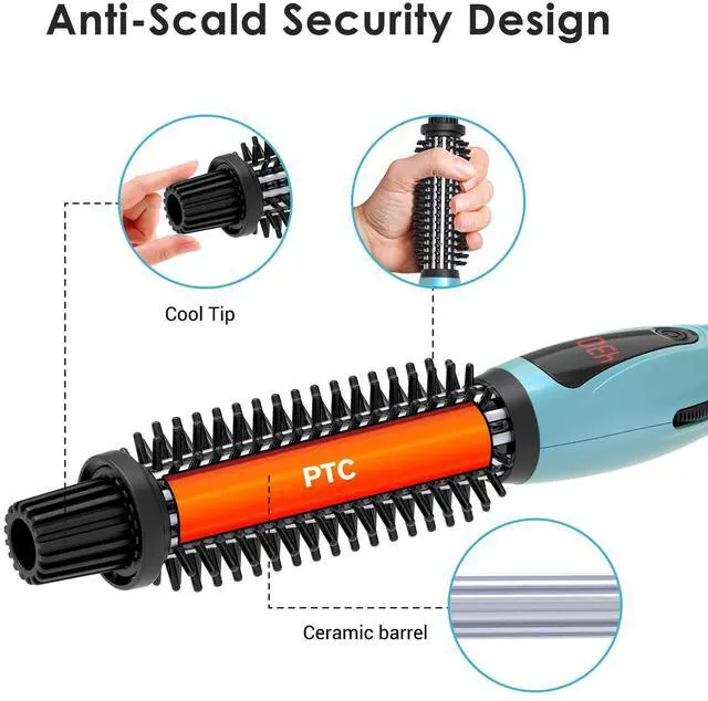 Nylon Thermostable Anti-Scald BristlesThis is the safest curling iron brush for you, you can be sure that you will never burn your hands, fingers, neck, or scalp while using the tool. The nylon thermostable bristles, and long tip remain cool to the touch, you don't need gloves anymore as from now on. NOTE: IT IS NOT A HOT AIR BRUSH!!