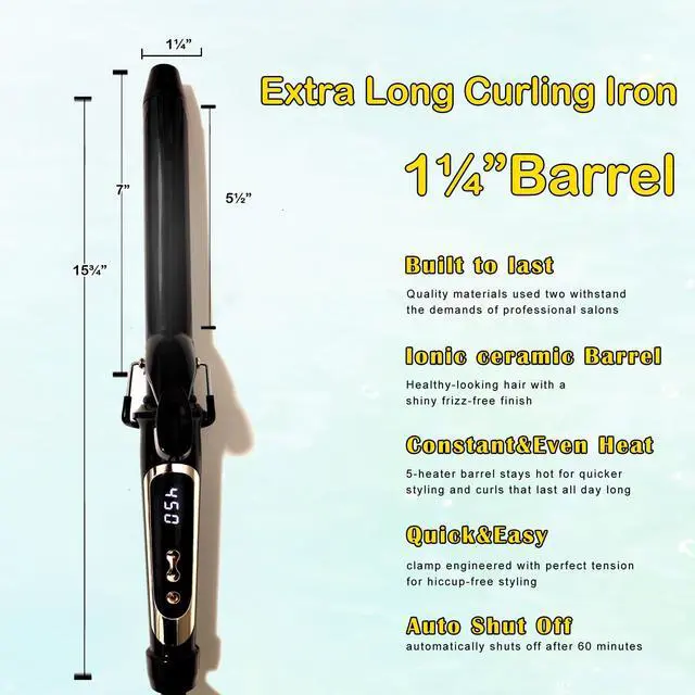 This 1 1/4 inch Extra long barrel curling iron is suitable for most hair types!