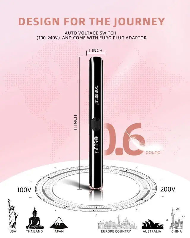 Dorisilk cutting-edge hair straightener. Equipped with revolutionary plasma technology, it not only efficiently straightens hair but also enhances its health and vibrancy by sealing cuticles for smoother, frizz-free results. The 3D floating plates adapt to hair texture, ensuring even heat distribution for optimal styling while minimizing heat damage. Powered by a PTC heater, it swiftly achieves and maintains precise temperatures. complemented by a wide 500(260) temperature range catering to diverse hair types. Elevate your routine with this all-inclusive tool that unites innovation, precision, and hair well-being.