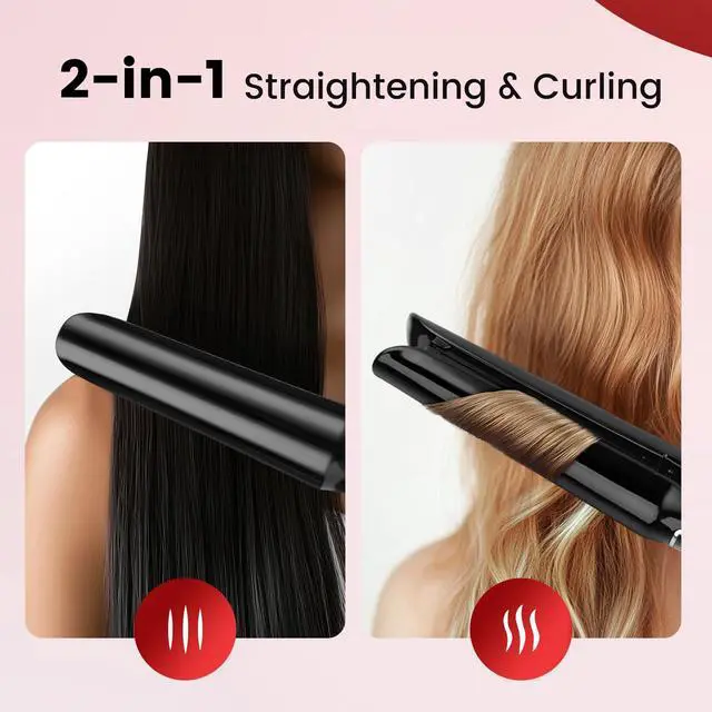 2-in-1 Straightener & Curling Iron Style Without Damage Switch from sleek straight hair to soft curls in seconds! The curved ionic plates glide smoothly to eliminate frizz, seal moisture, and prevent breakage. Adjustable heat (285°F445°F) suits every hair typefine, thick, wavy, or damaged. Perfect as both a hair straightener and curling wand for everyday styling or travel touch-ups.