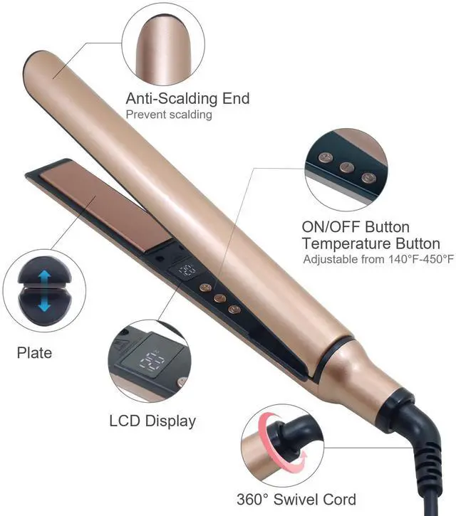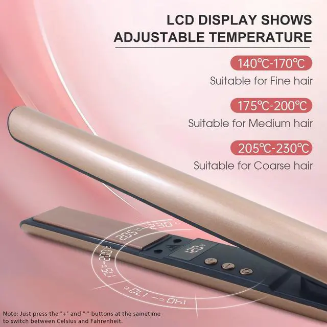 Our hair straightener offers adjustable temperature settings range from 320? to 450? and a LED display. It is ideal for various hair textures including fine, thick, curly, or straight, making it a versatile option for a range of hair styling needs.