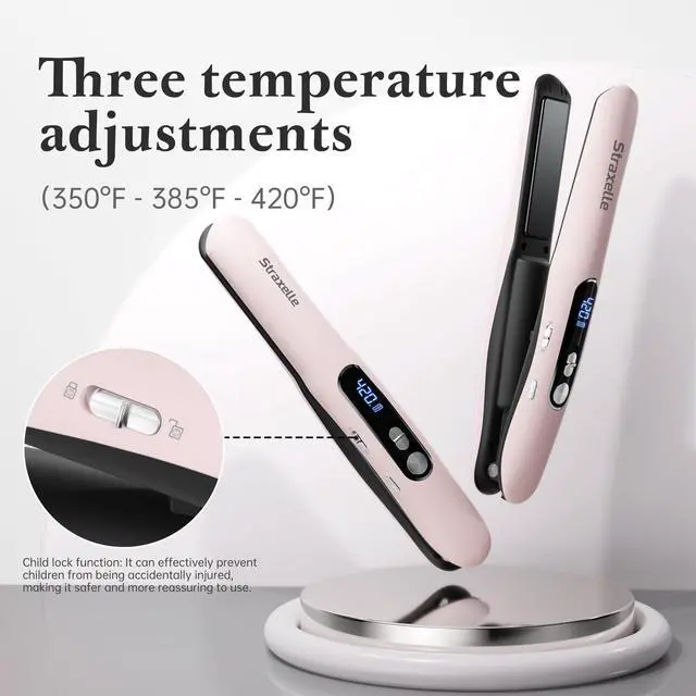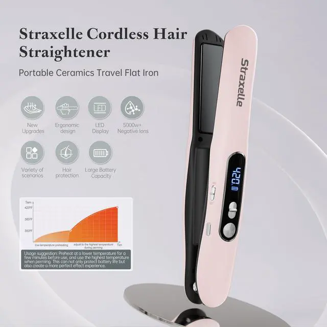 less cordless hair straightener reaches 420°F (215°C) within 2-3 minutes.