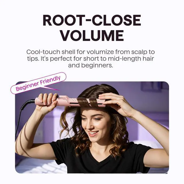 Key Benefit: Unlike traditional curling wands, the air styler features a Anti-Scald shell and cool air, maintaining a cool touch at all times. Allows you to confidently style close to the roots, completing a full curly hairstyle.