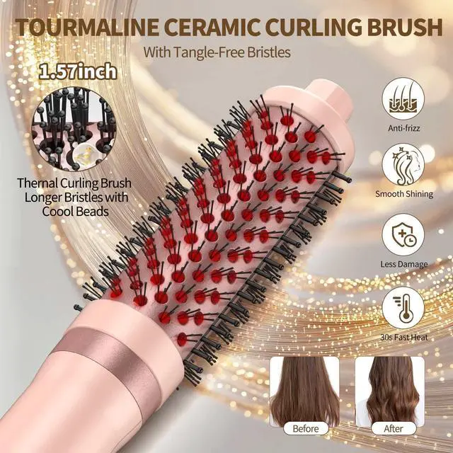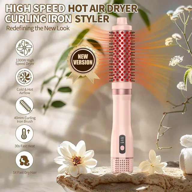 3 in 1 Blow Dryer Brush Thermal Curling Iron Wand Brush 1.5, Wet Brush Speed Dry 110000RPM Hot Air Hair Dryer Volume, Beachy Waver Blowout Curling Brush Hair Styler Anti-Frizz Straight, Curl