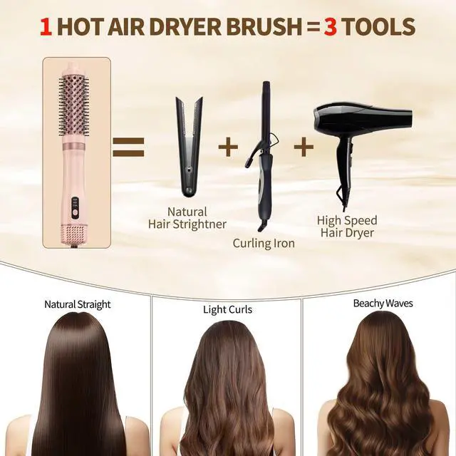 TECHNOLOGY UPDATES & UNIQUE DESIGN: One hair bruush can be three tools for you ,just bring one hair styling tools means you get 1 hair dryer ,1 hair curler ,1straightening brush,do the favorate hair style on wet hair or dryer hair ,no problem.Ideal gift for girls ,women ,mother,men ,boys ,girlfriends,boyfirends.a TOGUESS adopts blow dryer brush , natural hair straighter & curling brush 3 in 1 complete newest design. Different from the traditional old-fashioned hot air comb, except making your hair smooth and shiny, voluminous and fluffy, or delicately curled hair ends, also it can make beautiful beachy waves hair style. The traditional hair dryer brush has no curling iron function.