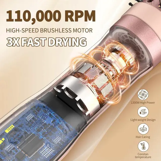ULTRA-FAST DRYING: No matter at home or outside trip ,it is a must have to go items ,As a hair dryers for women,curling iron function one ,this dry brush can dry your wet hair quickly ,longhair or short hair roller hot comb,hair straightener,it does well . TOGUESS hot air hair dryer brush is equipped with 110000 RPM high-speed brushless motor(upgrade from the traditional low-speed dryer motor), with wind speed up to 26m/s, strong airflow, can dry hair in a short time, 4 times faster than traditional hot hair dryer brushes.