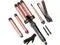There are 1* "straightener, 1* 3 barrel crimper, 1* tapered curling iron (0.35"-0.7"), 2 curling wands (1", 1.25") , 1* handle, 1* glove, 1* instruction manual, 2* clips.