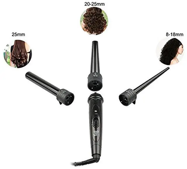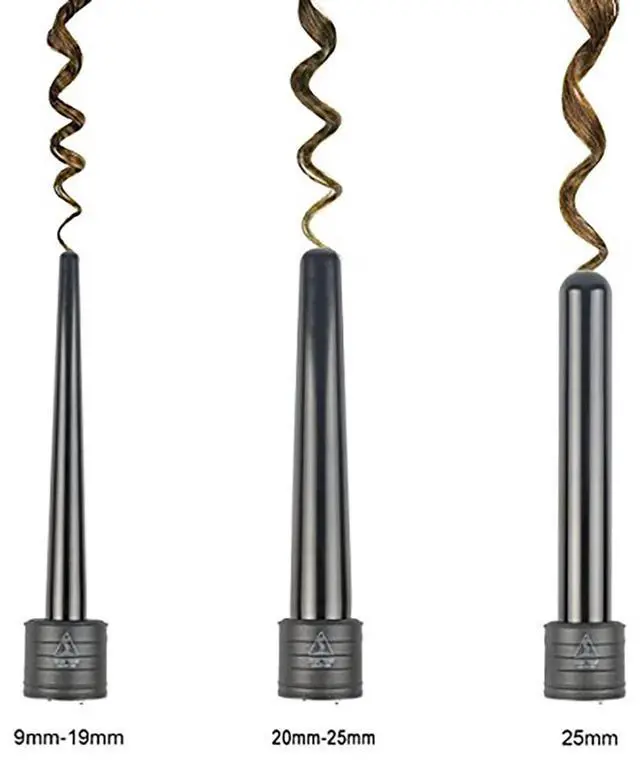 1. Our professional hair styling tools include 3 tourmaline ceramic barrels (20-25mm, 9-19mm, 25mm, Hair Waver iron ), perfect for making loose curls, natural curls, body waves, small or medium curls, and vintage waves. The barrels of different diameters and shapes produce various styles of curls. With it you are the most fashionable hair stylist!