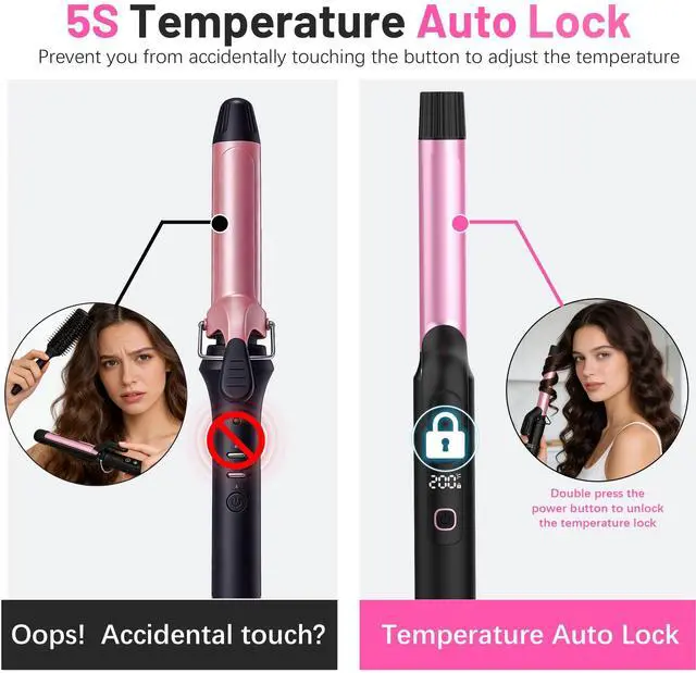 • 30S Fast Heat & Dual PTC HeatingUnlike traditional single-heat curling tools, this 1 inch curling iron features an advanced dual PTC system that delivers perfectly even heat across the entire 1 inch barrel curling iron in just 30 seconds. Your hair gets consistent warmth, not damaging hot spots.With a clear digital display and 5 customizable temperature settings (250°F410°F). Whether creating loose waves or defined curls, this dual voltage curling iron ensures smooth, healthy results every time.