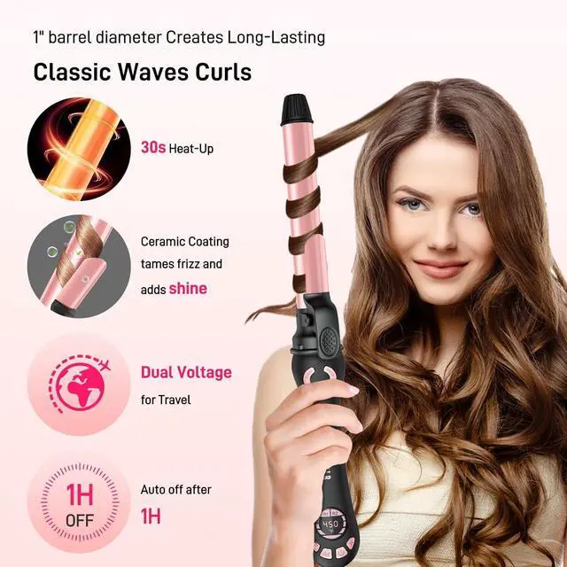- 1 inch rotating curling iron with 20 heat settings: from 250°F to 450°F, meet different hair type needs. Heat up quickly, save time.