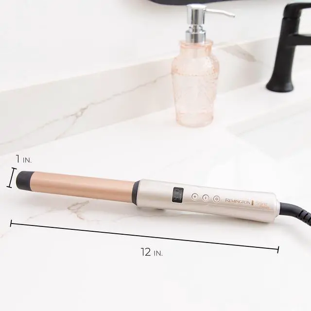REMINGTON SHINE THERAPY Argan Oil & Keratin Infused 1 Inch Straight Barrel Curling Wand for Loose Waves (includes heat glove)
