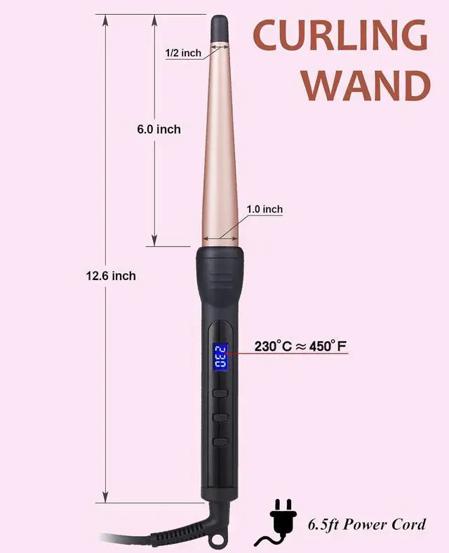 ![]() curling wand 3/4-1 1/4 inch | ![]() curling wand 1/2-1 inch | ![]() hair straightener 1.8 inch | |