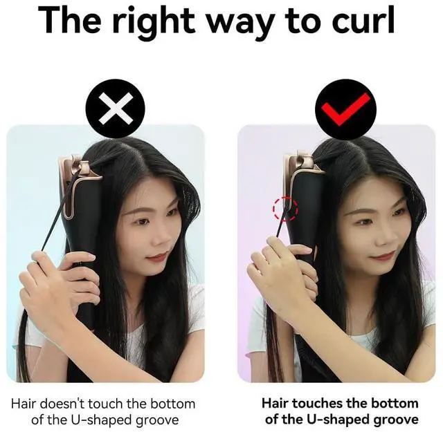 - Please place hair on ONE side of the barrel only. Don't put too much hair on both sides.The curling effect depends on the temperature and the amount of hair. If the curling effect is not good, try increasing the temperature and grabbing a small amount of hair. Don't grab too many at once.