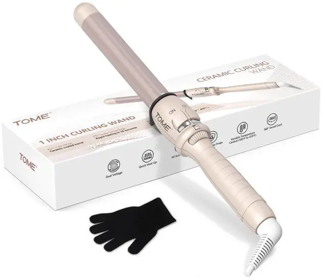 1 Inch Hair Curling Wand, Ceramic Curling Iron 1 Inch, Dual Voltage Hair Curler with Glove Included, Curly Hair Tools for Styling, Adjustable Temperature (180°F to 410°F for All Hair Types)