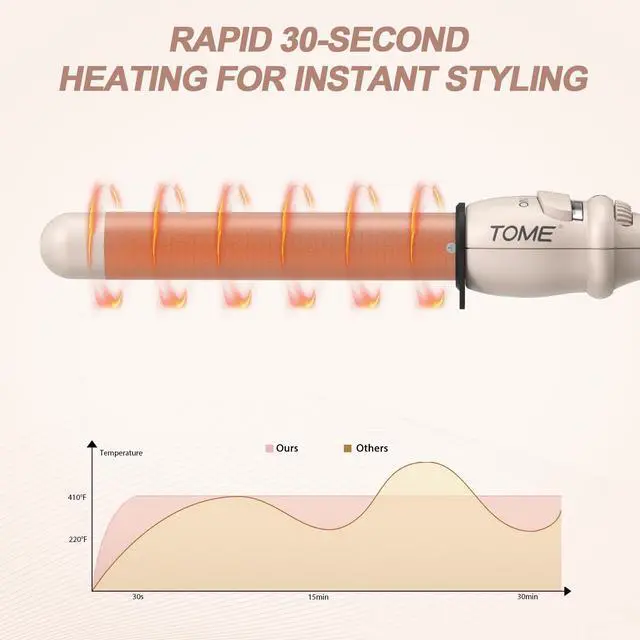Quick Heat-Up:Go for the ceramic curling iron for gorgeous defined curls and beach waves.30S heats up quickly and holds heat evenly with advanced PTC.That means faster styling and locked-in results.Anti-scald cool tip is 100% protect yourself from potential burns.