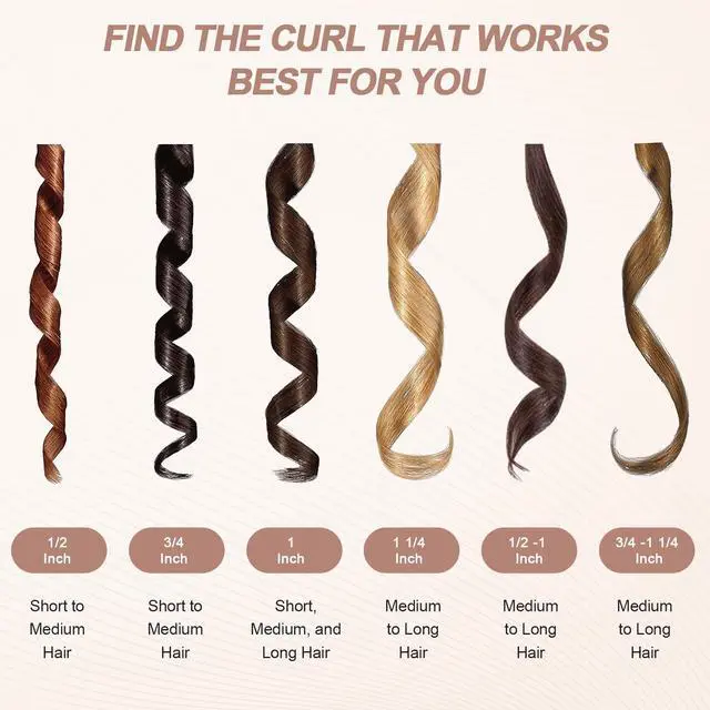 1 Inch Curling Wand:Curling wand 1 inch is make of clamp-free design for no-nonsense styling.Heat protective glove included for faster,safer styling.Grab a 1-inch section of hair and wrap it around the hair curling iron, point the barrel down while curling and hold in place for a few seconds,leacing the ends out and release the curl,pulling curl slightly to create a loose wave.