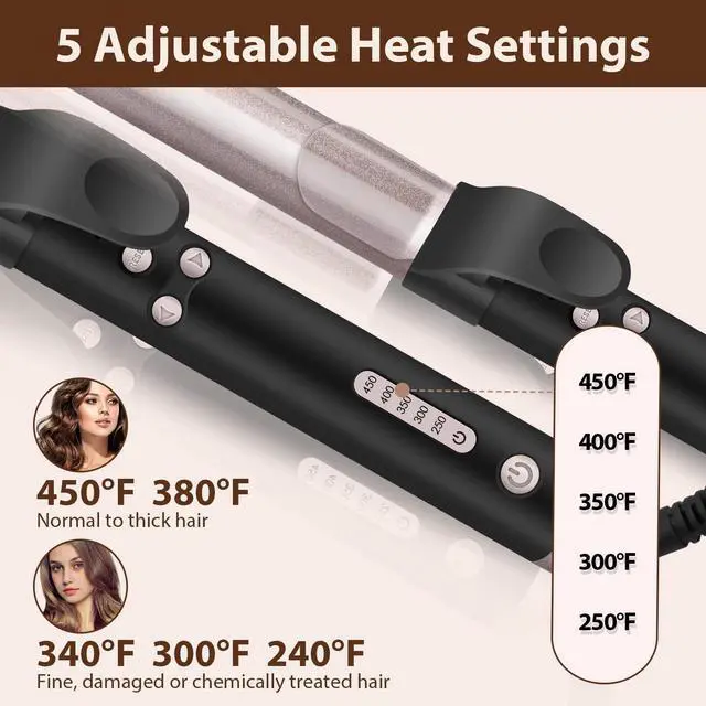 Adjustable Temperature Setting: Customize your styling experience with the 5 adjustable temperature settings (250-450°F). Choose the ideal temperature for your hair type and desired curl style.
