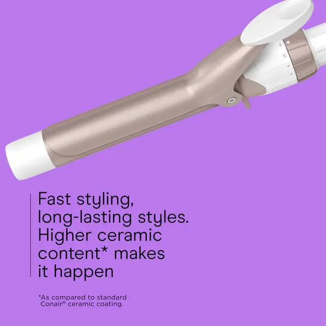Conair ceramic curling iron hair 1.25 1 1/4 inch long barrel styling even heat dual voltage setting