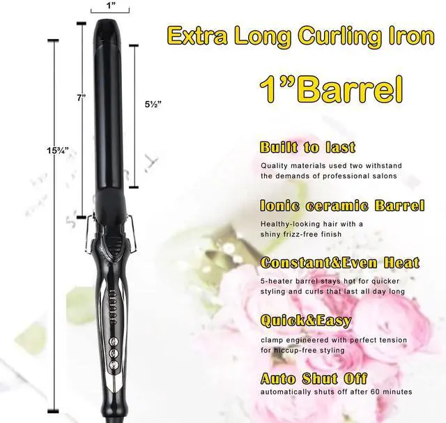 This 1 inch Extra long barrel curling iron is suitable for most hair types!
