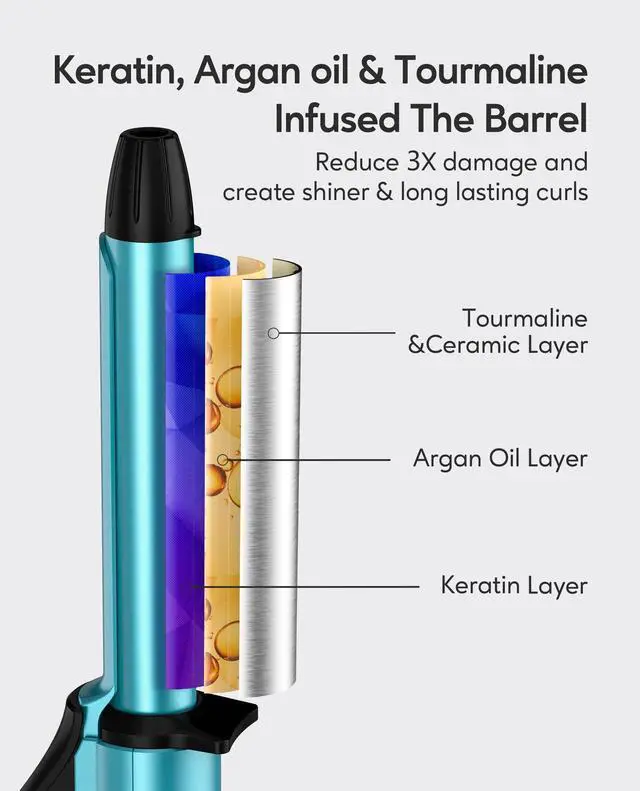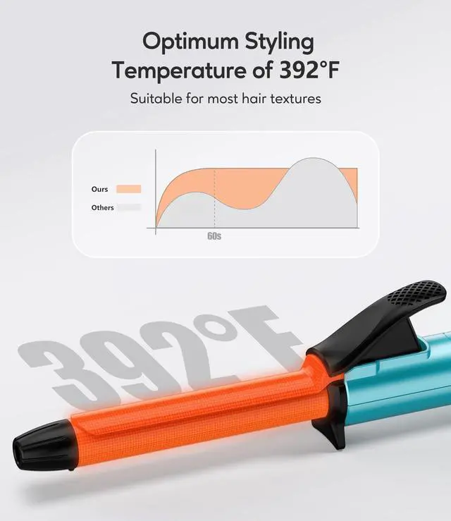 The curling iron has a clamp to hold hair flat against the tool, rotating the handle to wrap the hair around the curling iron. The clips provide the tension needed for long-lasting curls.