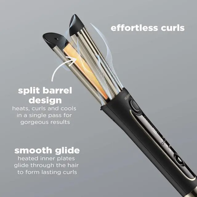 Split Barrel Design: Create curls, while quartz ceramic-coated plates glide effortlessly to smooth. With a section of hair between the plates, rotate 180° and wrap hair once around the barrel, glide down the length of the hair for long-lasting curls.