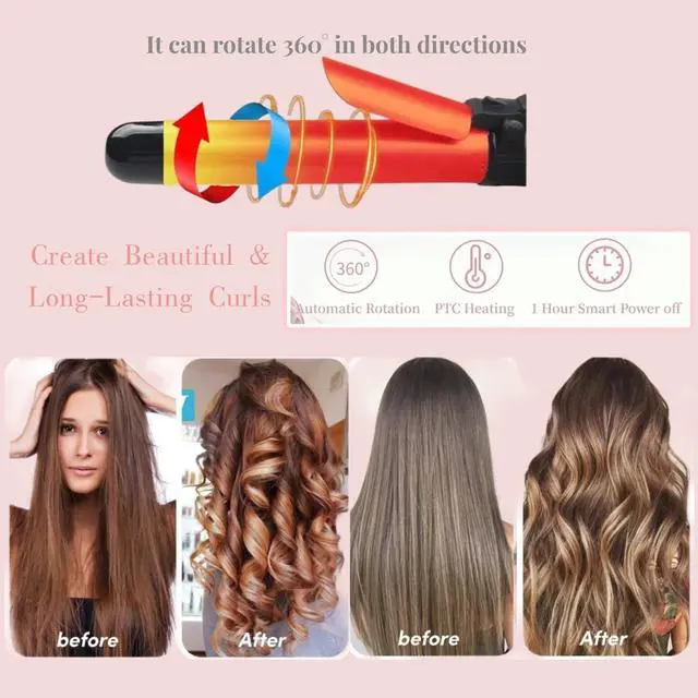 AUTO ROTATING CURLING IRON:This 1.1inch ceramic curling iron glides through the hair creating luxurious waves and long-lasting curls. Control the curling wand direction by pressing the 2 buttons,using process is completely smooth and snag-free to protect your hair from being ripped out.