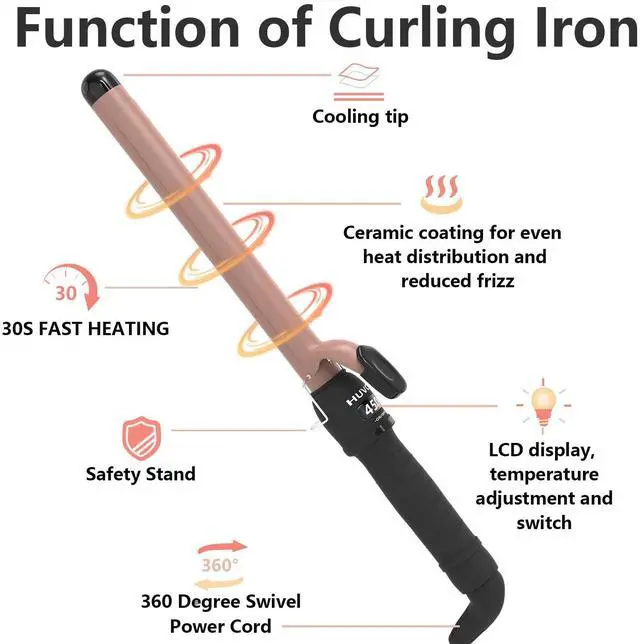 Versatility: Provides instant heat for instantly perfect styling with 30 seconds of heat. The cord on this long barrel curling iron can be rotated 360° for flexible use. The rotating curling iron is equipped with an anti-scalding tip that does not burn your hands. And using multi-layer barrel technology for even heat distribution; the curling wand is ideal for international travel.