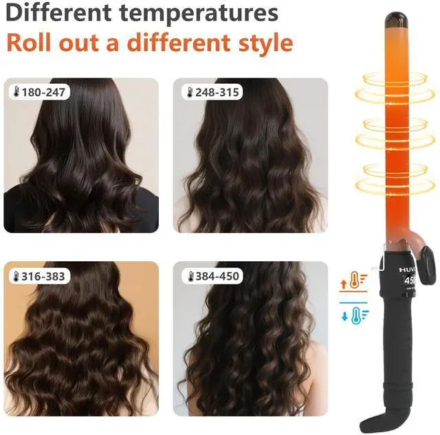 PRECISE INTELLIGENT TEMPERATURE CONTROL: This curling iron comes with an adjustable LCD dial that makes it easy to lock in the temperature you need.180-247 for thin, soft hair, 248-315 for medium hair, 316-450 for thick hair. suitable for curly hair of all textures and for thin, normal and even thick, coarse hair.