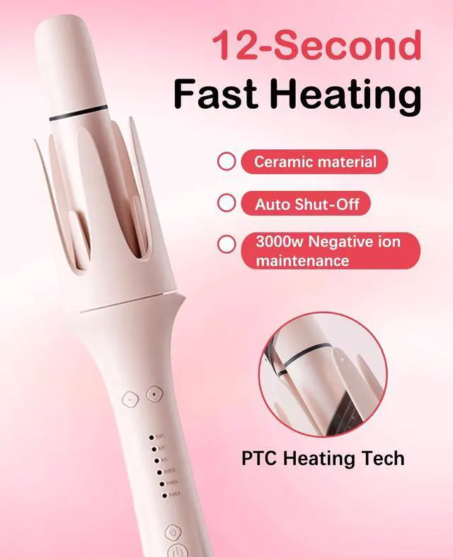 Fast Heating with Ionic Ceramic Technology: Equipped with advanced ceramic coating and 500 million negative ions, this rotating curling iron heats up quickly and distributes heat evenly, reducing frizz and locking in moisture for smooth, shiny, long-lasting curls