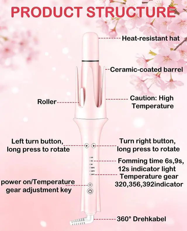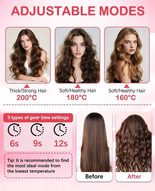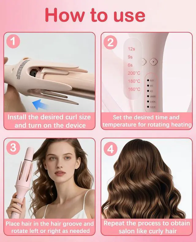 Auto Rotating with 3 Timer & 3 Temperature Settings: Designed with automatic 2-way rotation, this auto hair curler makes styling effortless even for beginners. Choose from 160C / 180C / 200C (3 temps) and 3 timer settings to customize curl definition for different hair types