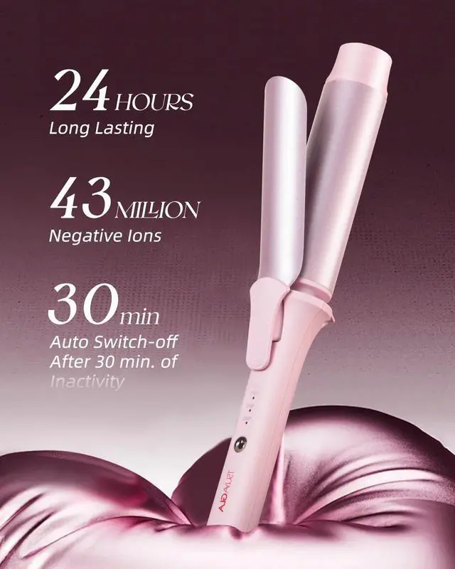 Large Hair Curling Wand, 1.6 Inch Big Barrel Curling Iron, 43 Million Ionic Ceramic Curler with 3 Temp, Auto Shut-Off, Long Barrel Curling Wand for Long Hair, Dual Voltage, Pink