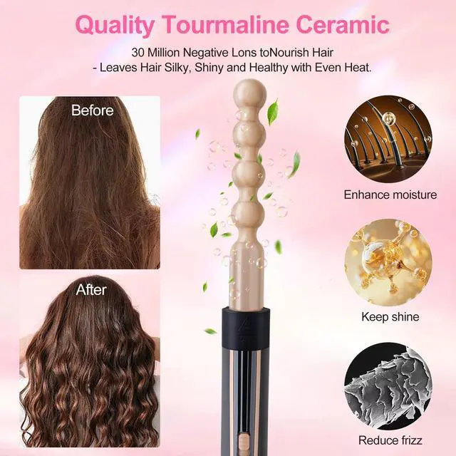 Premium Ceramic & Negative Ions Healthy Hair Protection We prioritize the health and safety of your hair. Crafted from high-grade ceramic, this Curling Wand distributes heat evenly (no hot spots!) while emitting negative ions to seal hair cuticles, lock in moisture, and reduce frizz by 50%. As a top-tier hair curler wand, it delivers salon-worthy curls without drying out strandsgreat for frequent use with this reliable hair curler;