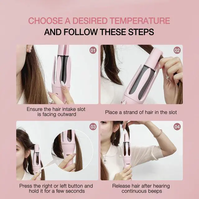 - [Versatile Styling for All Hair Types]With 3 adjustable temperature settings and a beep sound every 3 seconds, this curling wand is perfect for creating everything from loose waves to tight curls. Its faster rotation speed ensures beautifully defined curls that last all day. Whether you have thin, thick, or coarse hair, theHoygi automatic rotating hair curler adapts to your unique styling needs.