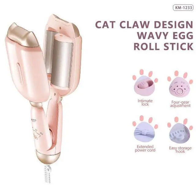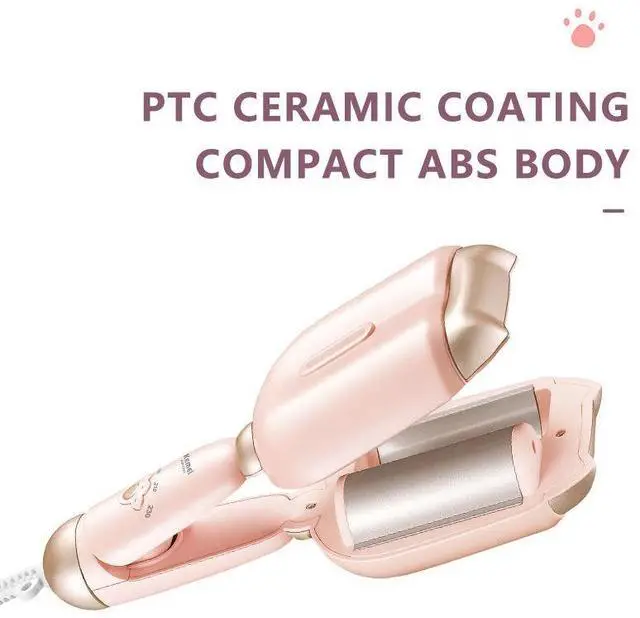 • Km-1233 Cute Designed Pink Color 4Levers Fast Temperature Iron Tool V-Shape Hair DIY Heating Machine Electric PTC Curler