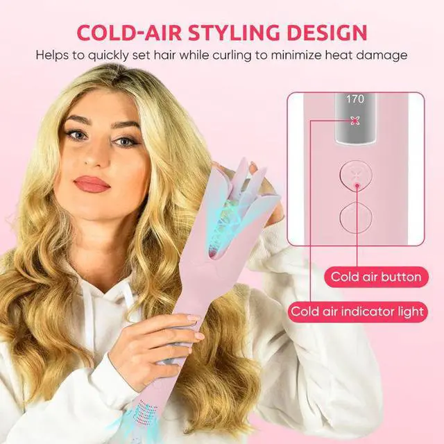 [Cool air Function Design] This curling iron with a cool air function that locks in curls while reducing heat exposure. It helps maintain hair moisture, minimize frizz, and protect against high-temperature damage for healthier, shinier res