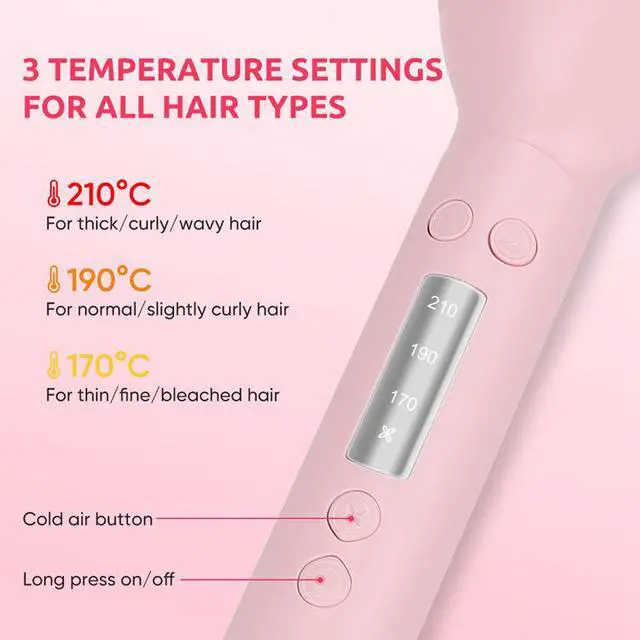 [3 Temperature Settings for Every Hair Type] With 3 heat settings (170-210°C), this hair curler is perfect for all hair types. The two-way rotation creates versatile curls, whether soft waves or defined curls.