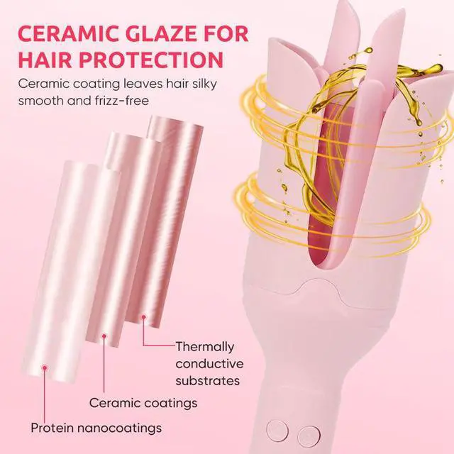 [Ceramic Glaze Coatings] The automatic hair curler is made of professional ceramic coating, it can keep hair moisturized and reduces frizz, maximum prevent the high temperature from damaging your hair.
