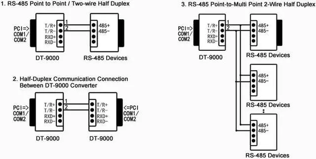 Mini RS 232 to 485 serial adapter enables the connections of multiple bus nodes and 32 devices can be joined in RS-485 network