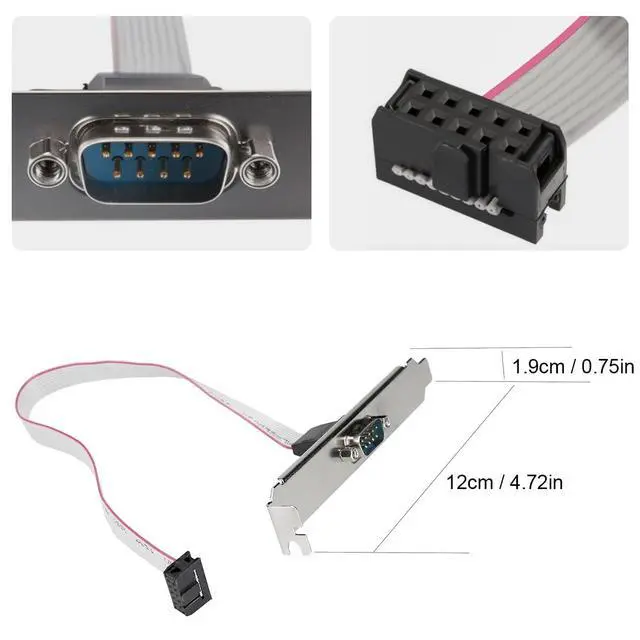 Total length is 11" (28cm) with 12cm bracket on DB9 female port end, use for DB9 (RS232) Serial port to any computer system which has an RS232 serial panel mount receptacle.