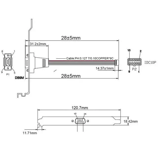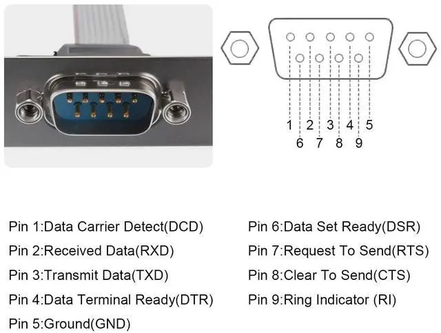 Connector Type: 1 x DB9 (Male) Serial Ports to 10Pin IDC (Female) Connector.