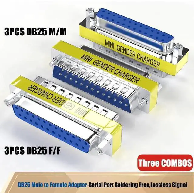 PACKAGE CONTENT: Cost-effective 6-PACK Serial RS232 DB25 Connector include 3 * Male to Male and 3 * Female to Female DB25 Mini Gender Changer.