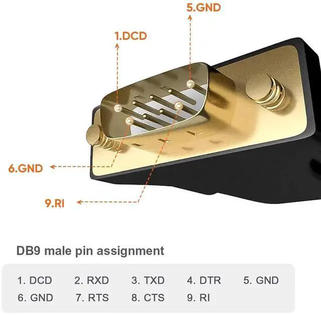 Gold Plated USB 2.0 to RS232 Male DB9 Serial Adapter connects a serial DB9(9 PIN) device, such as a modem, to a USB port on your computer. USB port with 1Mbps data transfer rate