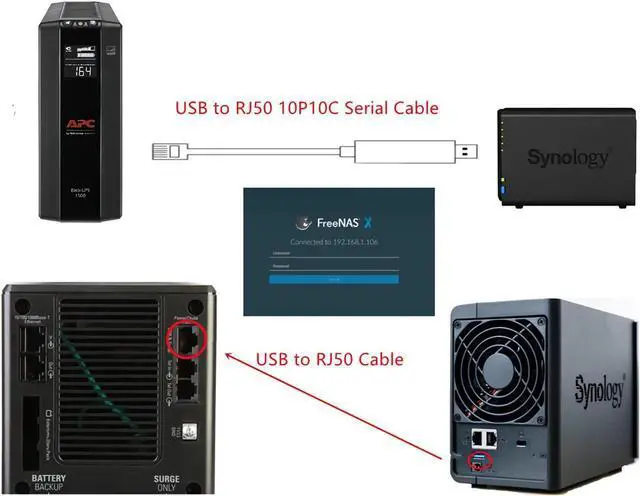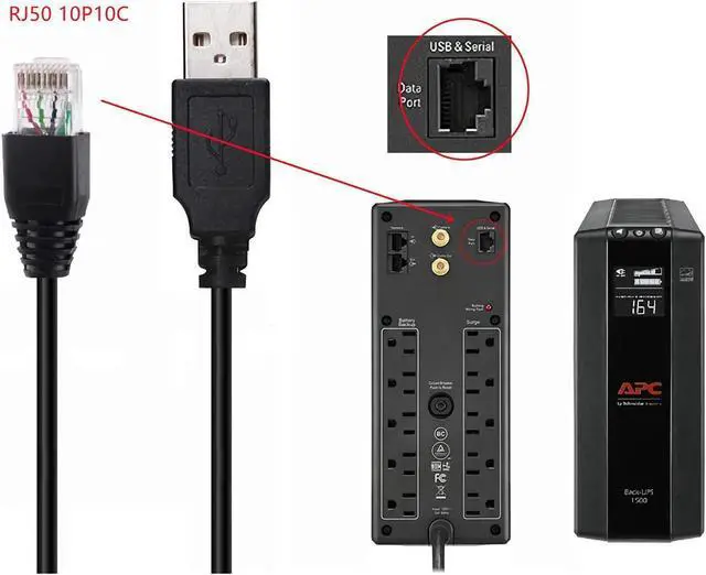• USB to RJ50 10P10C Serial Cable,connect APC Smart UPS and Laptop / Servers / Firewall/PC/ NAS, enabling power management, to update firmware, to monitor UPS, to reset password, to turn off the alarm, for functional debugging, and configure UPS parameters.