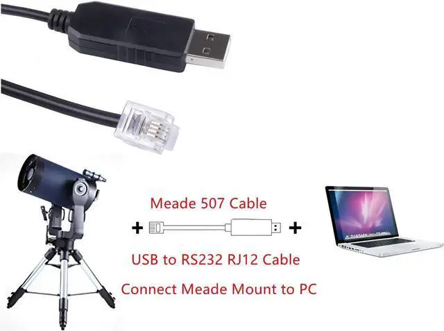 The cable is suitable for Meade telescope HBX port connecting to PC. USB to RS232 RJ12 6P6C control cable.