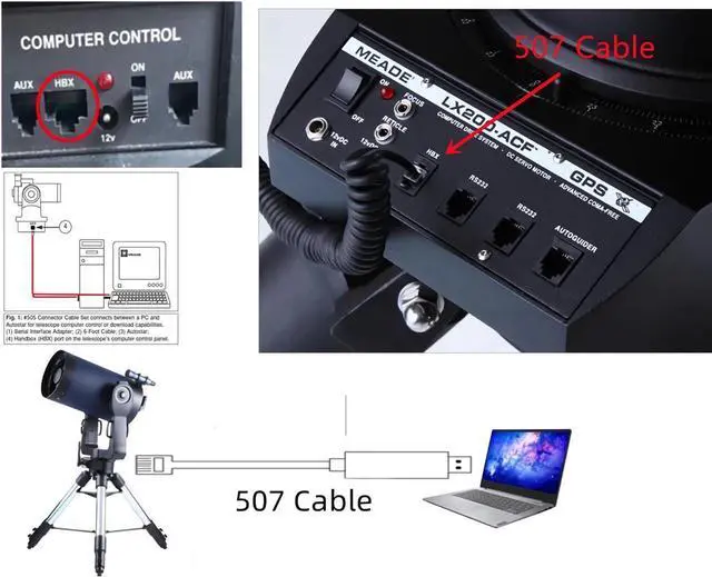 compatible with Meade LX600, LX200, LX200 GPS, LX200 ACF, LX200 classic, LX850, LX850 ACF, LX200 GPS SMT, LX80, LX90, ETX125 etc. Durable molded cable on both ends. Tested to perform as the original Meade part #507 cable.