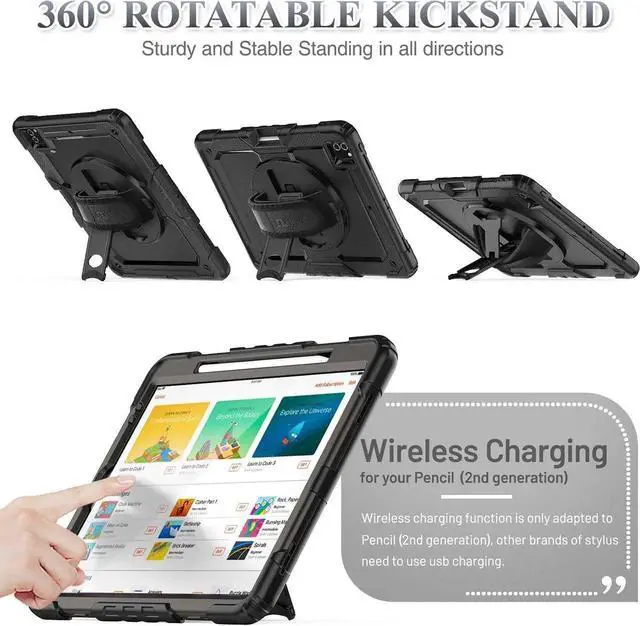 360 Rotating Stand & Hand Strap & Detachable Shoulder Strap: The sturdy kickstand will not only help your hands-free but also provide more flexible and comfortable angles for viewing or typing; The hand strap makes it easy for you to use the device with single hand while the shoulder strap makes it more convenient to carry the case for iPad Pro 12.9 during your outdoor working, travelling or climbing