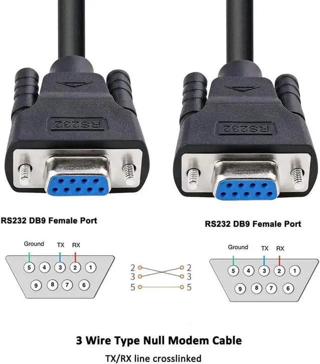 15 feet long null serial crossover cable f/f for RS232C lab equipment, PC laptop desktop computer, switch hub, router to transfer file, share resource, direct serial communication link, debug, test
