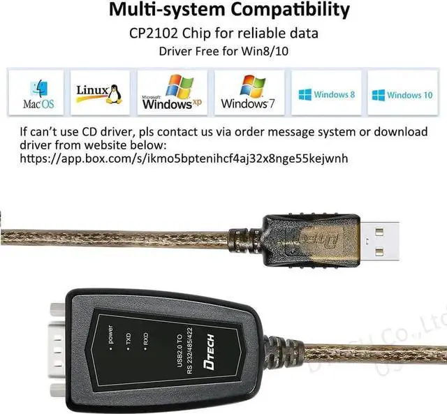 High performance CP2102 chip and I/O auto conversion circuitry makes it a reliable serial RS232 to USB converter dongle; LED lights helps you check the connection status easily