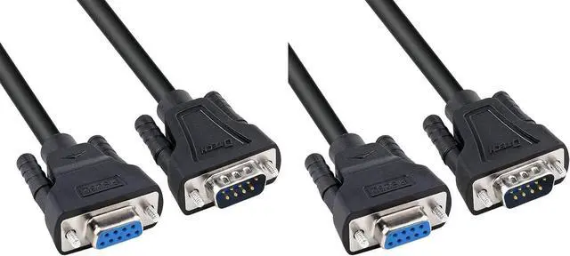 DTech 10ft DB9 RS232 Serial Cable Male to Female Extension Simple Null Modem Cord Cross TX RX Line 2 Pin Crossed for Computer Data Communication (10 Feet, Black) (Pack of 2)
